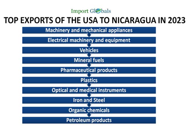 4. Machineries dominate the USA’s top exports to Nicaragua in 2023.