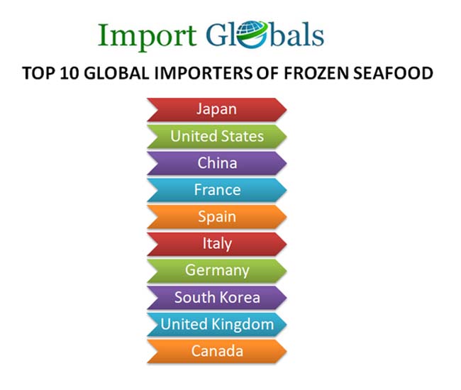 • Canada – Winding up Canada ranks 10th in the top global importers list of frozen seafood. The coastline of the nation with the Atlantic and Pacific Oceans help Canada emerge as a top seafood producer and importer.