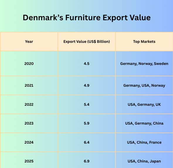 As per Denmark Import Data by Import Globals, Danish furniture exports help keep the global market strong today. They change the way people live, the way buildings are designed, and the way people live in Europe, North America, and Asia.