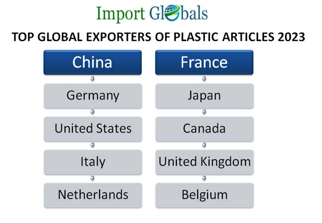 • France – As per the France Export Data, the export trade value of plastic articles in 2023 is 15 billion US dollars.