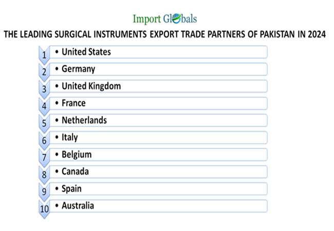 Ans. The United States leads the top export trade partners of Pakistan for surgical instruments in 2024.