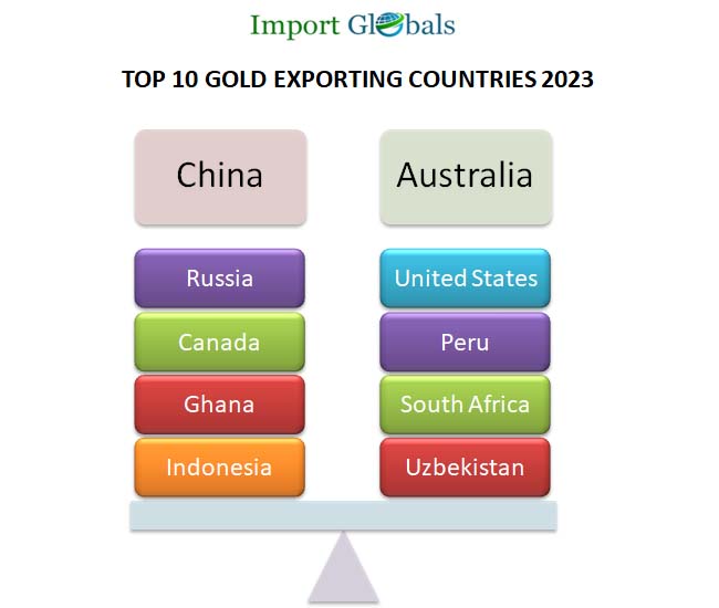 • China – The South Asian nation has been noticed increasing its global export trade of gold and its products for stabilizing the economic funds. Methods like the Shanghai Gold Exchange are used to trade the mined and recycled gold from the country. The total export trade value of gold from China in the year 2023 is accounted as 110 billion US dollars.