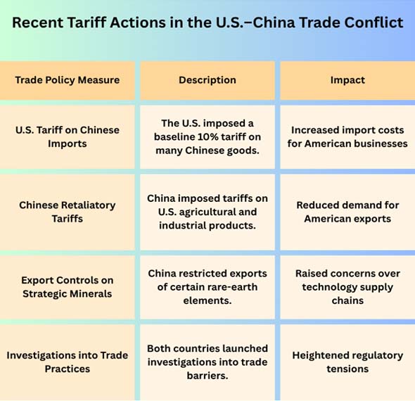 The US has put tariffs back on some Chinese imports, and China has responded by doing things that affect American goods and critical industries. People, businesses, and governments all across the world are worried about these changes because long-lasting trade battles between the two giants might disrupt supply chains and slow down the growth of global trade.
