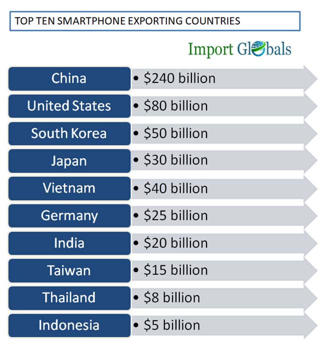 With the increasing demand for smartphones in the industry, many countries have started importing and exporting smartphones with manufacturing to become the leading smartphone trade holders. China has come up with the highest trade of smartphones, followed by some other nations as discussed below.