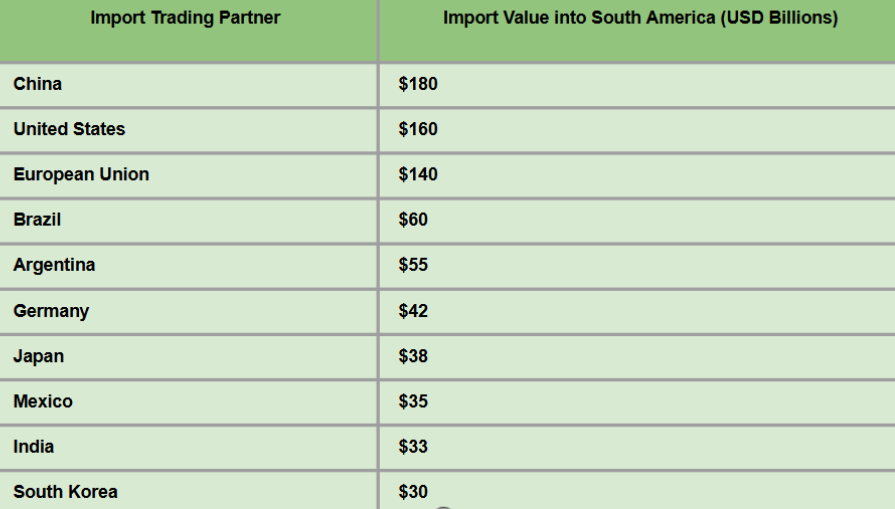 Top 10 South America Import Partners : SOUTH AMERICA IMPORT DATA