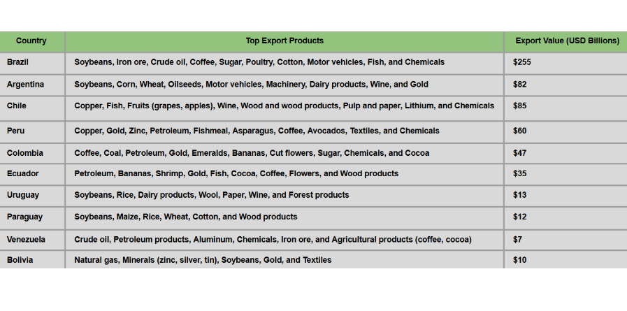 TOP 10 South American countries Export Products : SOUTH AMERICA TRADE DATA