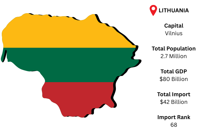 The largest Baltic nation, Lithuania, acts as a vital commercial bridge connecting Eastern and Northern Europe. To sustain its industrial and service sectors, its open economy is largely dependent on imports of consumer goods, machinery, and energy. The capital and the hub of the nation's economy and logistics is Vilnius. As per Lithuania import data, with a population of over 2.7 million and a GDP of almost USD 80 billion, Lithuania is expected to import approximately USD 42 billion in 2024, demonstrating its crucial position in regional and EU supply chains.